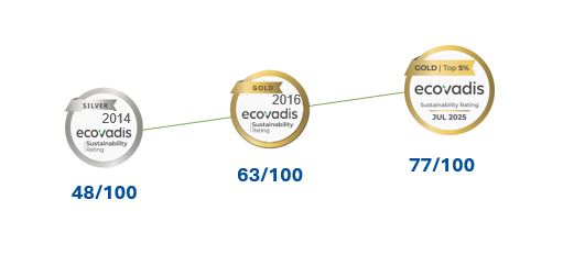 Od leta 2014 je tako družbi SOCOMEC pomagalo prepoznavati področja za napredek in uvajati ustrezne akcijske načrte kot del pristopa nenehnih izboljšav. Odraža zavezanost skupine k družbeni odgovornosti in strukturiranje njene strategije trajnostnega razvoja.